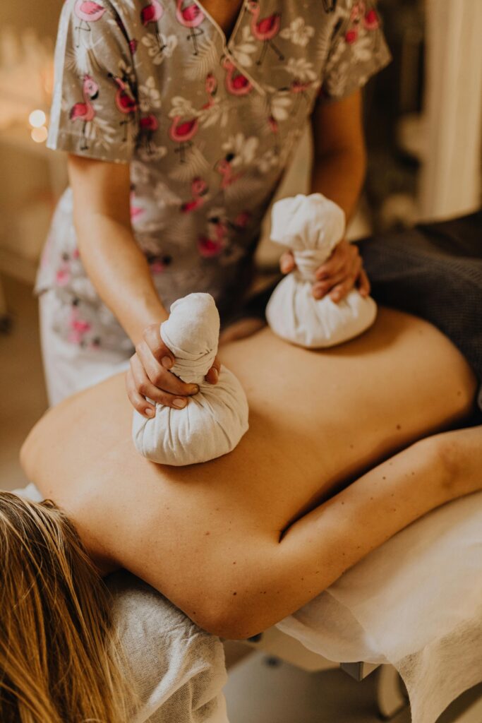 De kruidenstempelmassage is een ontspannende en verwarmende massage waarbij katoenen stempels gevuld met natuurlijke kruiden worden gebruikt. De stempels worden verwarmd met stoom of olie en met zachte, ritmische bewegingen over het lichaam gemasseerd. De combinatie van warmte en kruiden zorgt voor een diepe ontspanning en een verzorgend effect op zowel lichaam als geest.